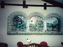 Commercial establishments which I have had the privilege to enhance with murals include restaurants, apartment lobbies, party rooms and corporate offices. Each venue has its own special needs in order to best display its environment. Restaurants can allow for romance and familiarity; offices, by nature, require a more serious tone. Whatever the environment, there is an ideal solution to satisfy that particular need. Calligraphy is a handy skill to utilize for scripting mission statements or logos.