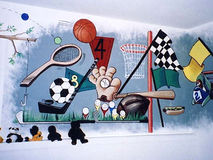 When it comes to children's rooms, the little kid in each of us comes out. It is a joy to light up the faces of little ones with whimsical fantasy environments. Colors are usually more eye-popping, figures and images can be exaggerated without question and the subject can cover a range of topics. Copyright infringement is not allowed in my business; there is no copying of Mickey Mouse or Winnie the Pooh, etc. However, there is no need for this because the imagination carries ideas further than any previously created picture or character. One thing about which I caution each patron is to choose a subject that will hold the child's interest as he/she grows in and out of various stages. Sports has been the all-time best seller for boys; girls' preferences for sweet images of landscapes, swings, forests, ribbons, open skies above their beds, and jazzy adolescent designs, etc., last a long time. Whatever the case, murals are an investment that require some thought about longevity. Seeing youngsters' eyes light up when they see their new bedroom is priceless.