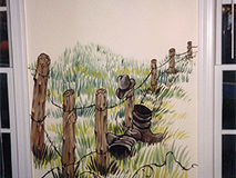 Painting landscapes (or cityscapes, or skyscapes, or seascapes) is a very effective way to create a dramatic setting for any room, whether it be in a home or in a commercial establishment. Whether the mural is for a full wall or a smaller segment of the wall, as, perhaps, seen through a pretend window, it commands attention. I come from the old school of purists that paints with real brushes--- no airbrushes or gimmicks. Before I begin, the ideas are well thought out in my head so errors are few and far between, if there are any at all. That makes for speedy work because mistakes take time to correct and I can avoid unnecessary frustration. There is a lot of room for artistic license through color, style, and technique when painting 'scapes'. Painting this type of mural is a lot of fun and is as rewarding as seeing the completed work. My portfolio has, by far, more murals in this category than any other; it has been a very popular choice.
